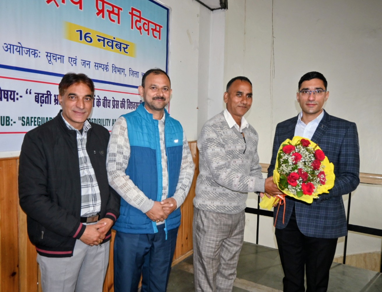 16 नवंबर।चंबा में जिला स्तरीय राष्ट्रीय प्रेस दिवस का आयोजन किया गया। जिला मुख्यालय चंबा के बचत भवन में आयोजित इस कार्यक्रम में उपायुक्त चंबा मुकेश रेपसवाल बतौर मुख्य अतिथि शामिल हुए। कार्यक्रम में जिला चंबा के वरिष्ठ संवाददाताओं के अलावा सभी प्रिंट व इलेक्ट्रॉनिक्स मीडिया के संवाददाताओं तथा सोशल मीडिया के प्रतिनिधियों ने भाग लिया। कार्यक्रम में प्रेस की विश्वसनीयता के संरक्षण के विषय में बोलते हुए उपायुक्त मुकेश रेपसवाल ने कहा कि समाचारों को प्रसारित करने से पूर्व उनकी पुष्टि करना व समाचारों से संबंधित दूसरे पक्ष को समाचारों में स्थान देना प्रेस की विश्वसनीयता के लिए अत्यंत आवश्यक है। उन्होंने कहा कि यह ठीक है कि मीडिया के आधुनिक दौर में आम व्यक्ति के लिए समाचारों का शीघ्र प्राप्त होना महत्वपूर्ण है इसे ध्यान में रखते हुए ब्रेकिंग न्यूज़ की प्रतिस्पर्धा के कारण अक्सर कुछ मीडियाकर्मी अपुष्ट समाचारों को दूसरे का पक्ष जाने बिना प्रसारित कर देते हैं जोकि प्रेस की विश्वसनीयता के लिए घातक है तथा ऐसा करने से न केवल उस मीडिया समूह की बल्कि समूचे प्रेस वर्ग व प्रेस से जुड़े लोगों की व्यक्तिगत विश्वसनीयता को भी नुकसान पहुंचता है। जिला चंबा के प्रेस के संबंध में अपने अनुभव सांझा करते हुए उपायुक्त ने कहा कि जिला चंबा की प्रेस की कार्यप्रणाली बेहद शालीन, जिम्मेदार व विश्वसनीय है तथा जिला की प्रेस ने आपदा सहित अन्य विभिन्न मौकों पर अपनी पेशेवर व अनुशासित कार्य क्षमता का बेहतर परिचय देते हुए विश्वसनीयता की सराहनीय मिसाल कायम की है। उन्होंने कहा कि जिला चंबा की प्रेस की विश्वसनीय कार्यप्रणाली का ही परिणाम है कि उनके द्वारा समाचारों के माध्यम से उठाई गई जन समस्याओं व अन्य विषयों पर जिला प्रशासन तुरंत संज्ञान लेता है। उन्होंने जिला की प्रेस को जिला में आपदा सहित कई विभिन्न मौकों पर सरकार व प्रशासन को जनहित के दृष्टिगत सकारात्मक सहयोग प्रदान करने के लिए उनका आभार व्यक्त किया। उपायुक्त ने ओल्ड पुलिस चौकी के समीप चंबा प्रेस क्लब के लिए दो कमरे उपलब्ध कराने की घोषणा भी की। इस मौके पर उपायुक्त ने कार्यक्रम में शामिल जिला के विभिन्न क्षेत्रों के आए सभी मीडिया कर्मियों व प्रतिनिधियों को सम्मानित भी किया। इससे पूर्व प्रातः 9:00 बजे राष्ट्रीय प्रेस दिवस के अवसर पर ऐतिहासिक चौगान मैदान में डीसी-11 तथा प्रेस 11 के मध्य एक फ्रेंडली क्रिकेट मैच भी आयोजित किया गया। 15-15 ओवर के इस मैच में डीसी-11 की टीम विजेता रही।इससे पूर्व जिला लोक संपर्क अधिकारी बलबीर सिंह ने सर्वप्रथम राष्ट्रीय प्रेस दिवस आयोजन के संबंध में महत्वपूर्ण जानकारी देते हुए परिचर्चा के विषय के संबंध में अपने विचार रखे 